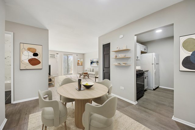 Newly renovated 2-bedroom, 2-bath condo in desirable Shorewood! This light and bright second-floor unit features new luxury vinyl plank flooring throughout and an open living and dining area that flows seamlessly into the updated kitchen. The kitchen shines with new cabinetry and hardware, updated countertops, a herringbone subway tile backsplash, and ample counter space. Both bedrooms are generously sized, including a primary suite with a completely renovated private en-suite bath featuring a new vanity, mirror, lighting, and a beautifully tiled walk-in shower. The second full bathroom has also been fully updated and offers a relaxing soaking tub. Enjoy your private balcony, plus added convenience with a basement storage locker and one assigned exterior parking space. Well-maintained building offers coin laundry in the basement and access to a clubhouse with party room and pool. Prime location just minutes to shopping, dining, and I-355, and zoned to highly rated Glenbard West High School. A fantastic opportunity to own a turnkey condo in an unbeatable location!